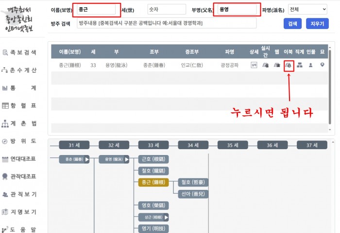 최종근님 요청하신 인터넷족보 열람 방법입니다